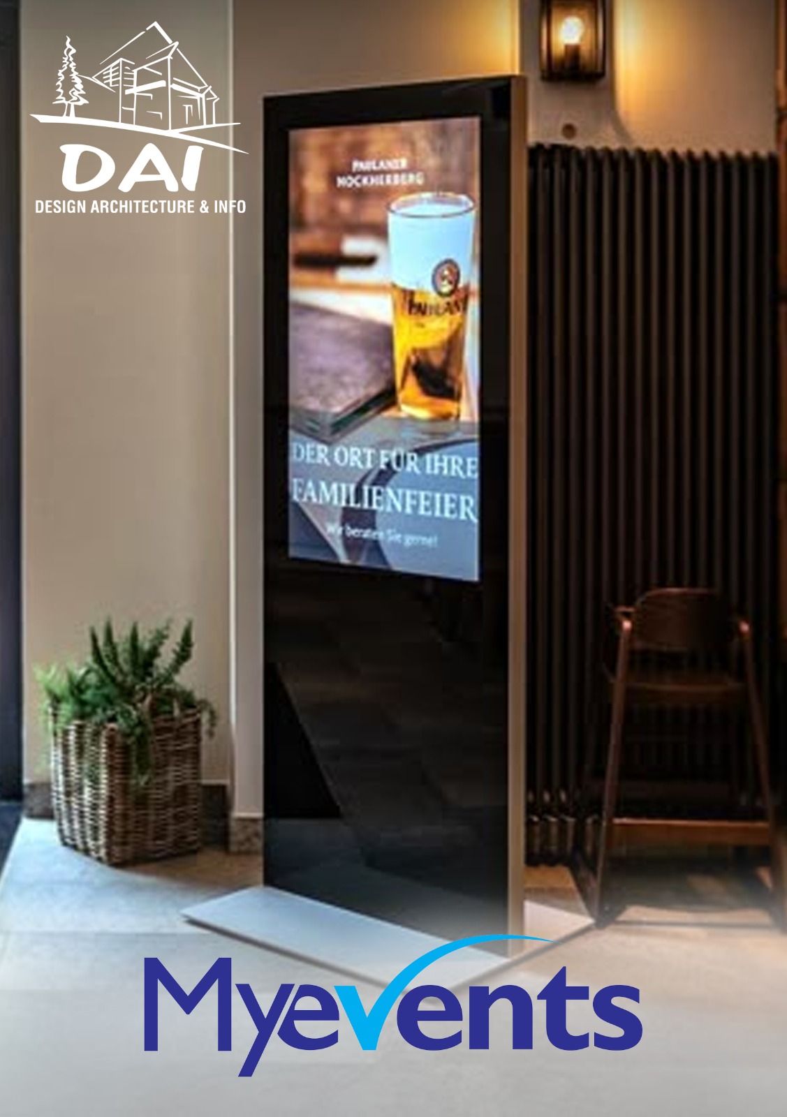 My Events est la branche communication et marketing digital de Dai Entreprise, spécialisée dans la publicité numérique via écrans dynamiques. Elle accompagne les marques et institutions dans le renforcement de leur visibilité grâce à des supports innovants et un contenu visuel à fort impact.Nous concevons des espaces modernes, esthétiques et fonctionnels, tout en intégrant des solutions technologiques innovantes au cœur de nos projets. Notre approche repose sur la créativité, la performance et la durabilité, afin d’offrir à chaque client un résultat sur mesure et de haute qualité.